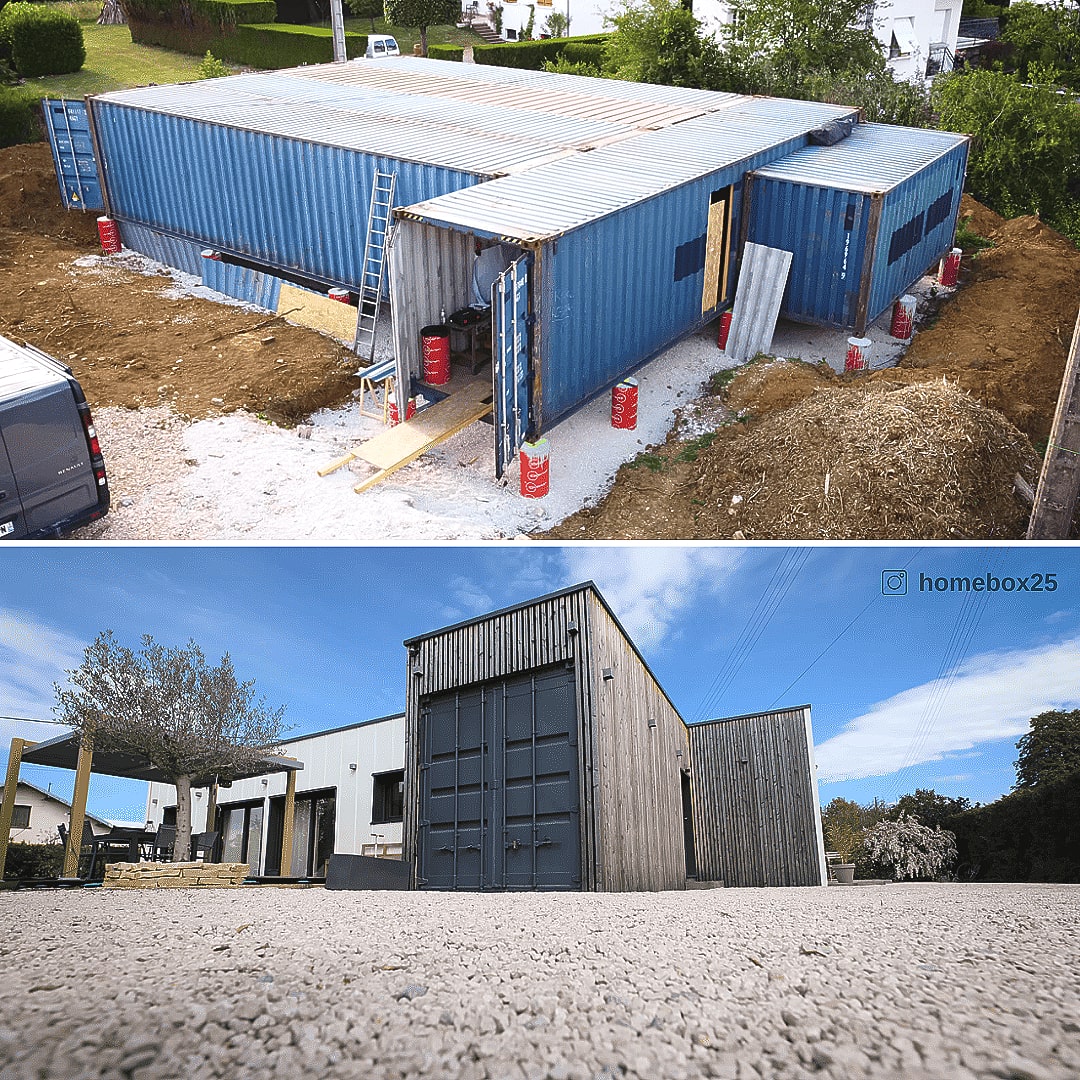Capucine and Florent, both 30 years old, share a strong interest in working on home projects. This passion led them to take a creative approach during a challenging time. They used their free time during lockdown to build a house using shipping containers.