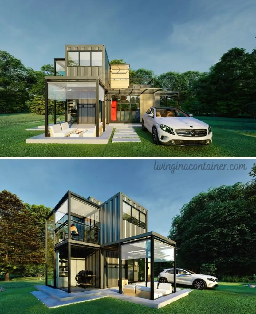The container house design we're going to show you today is really cool. 4 shipping containers were used in the design of the house.